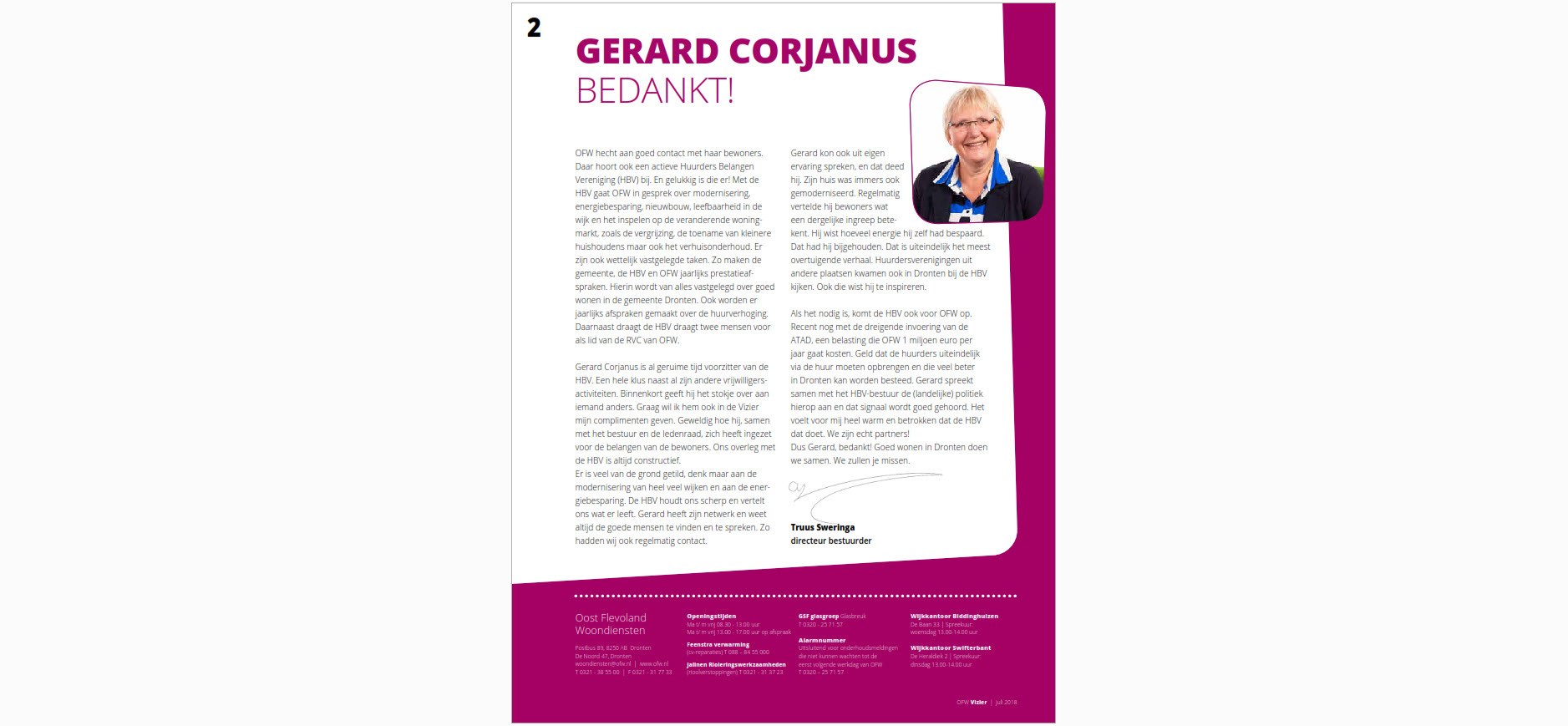 Gerard Corjanus wordt door OFW bedankt.Om de hele pagina te lezen, download u de afbeelding.Deze is ook te lezen in de vizier ( juli 2018 )